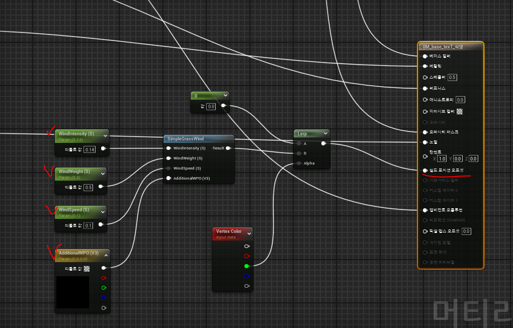 마스크맵과 SimpleGrassWind 노드를 이용한 간단한 노드다.